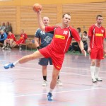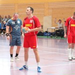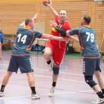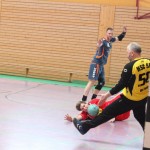 Nach der Halbzeit verliefen die folgenden Minuten ebenso ausgeglichen wie weite Teile der Partie auch sonst, was dann aber folgte, war ein Lauchstädter Einbruch, der seinesgleichen sucht. Vom 24:24 ließen die VfBler die Gäste bis auf 24:30 enteilen. Dabei schossen die Lauchstädter im Angriff aus allen Rohren, allein zählbares sprang nicht dabei heraus und so wurde nach 44Minuten die Notbremse gezogen. Eine Auszeit sollte die Schönburg-Schützlinge wieder in die Spur bringen und eben dieser zog sich noch in der Halle um, um sofort eingreifen zu können. Das Schönburg auch mit inzwischen 58 Jahren in der Lage ist, dass VfB Spiel auf ein höheres Niveau zu heben, sollte inzwischen allseits bekannt sein und wird auch in des Gegners Spielbericht entsprechend gewürdigt, dennoch darf die Frage im Raum stehen bleiben, warum die Mannschaft ihren Coach nicht eher aufs Feld beorderte. Was folgte war die kräftezehrende Wende, denn nach einem kämpferisch starken 7:0 Lauf der Goethestäder waren sie beim 31:30 wieder die Führenden.
